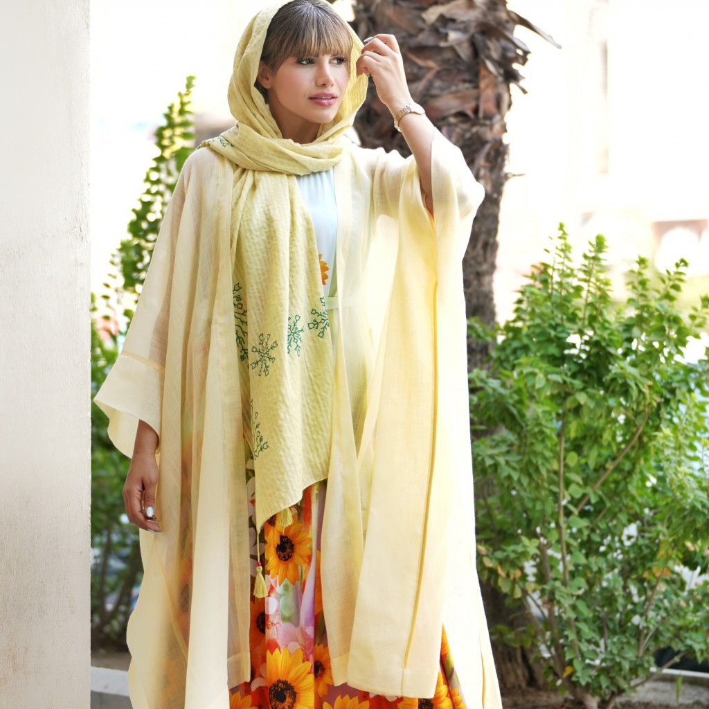 دور یقه و دور حلقه آستین نواردوزی شده